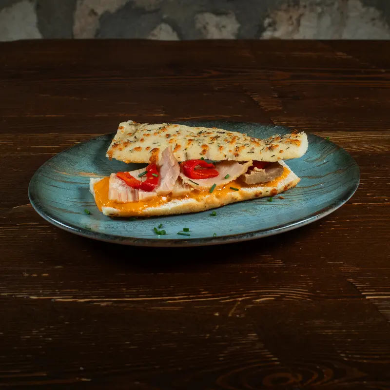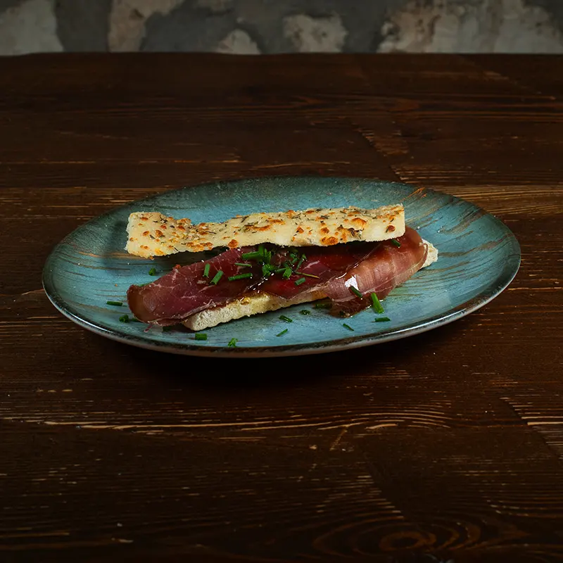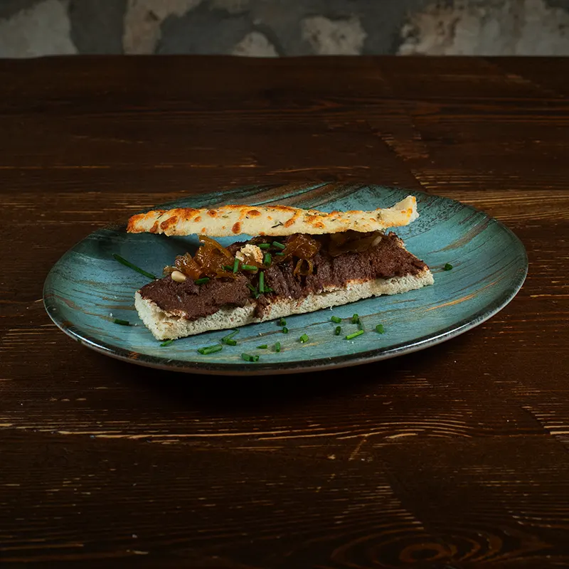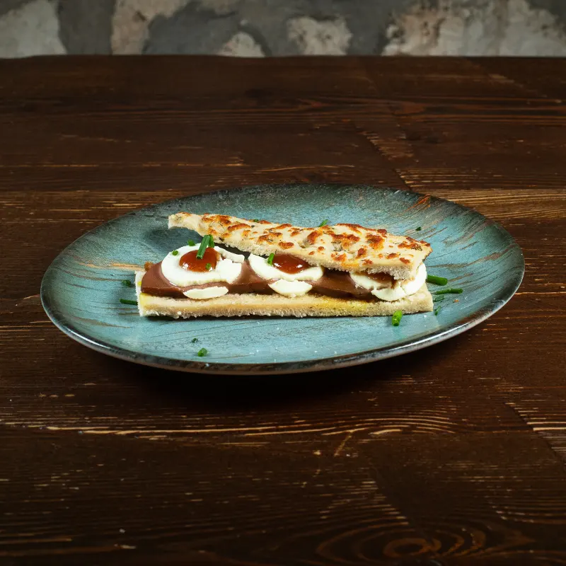 Montadito con pan de romero, tomillo y queso inyectado